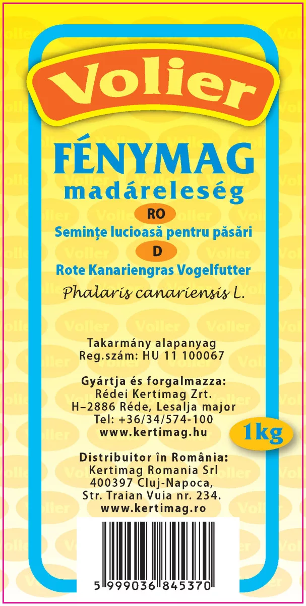 A fénymag a madarak étrendjének fontos része, és a Volier márkanév alatt kapható madáreleségben is megtalálható. A fénymag (Phalaris canariensis) egy gabonaféle, melyet a madarak kedvelnek. Ez az eleségkeverék a kedvtelésből tartott madarak számára készült, és önmagában, vagy más magokkal keverve is etethető.