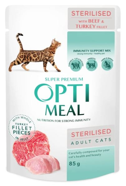 OPTIMEAL alutasakos macskaeledel Steril Marha, Pulyka filé szószban 85g
