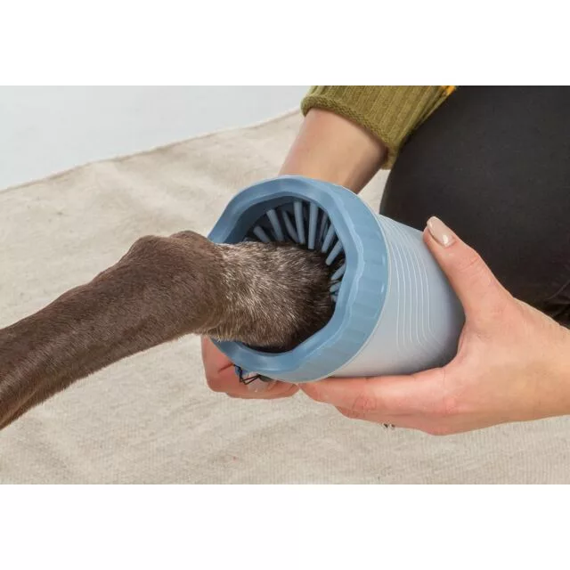Felejtsd el a sáros lábnyomokat a padlón és a kanapén! A Trixie Mancstisztító egyszerű, gyors és hatékony megoldást nyújt kutyád mancsának megtisztítására minden séta után. Ez az okos kis eszköz gyengéden, mégis alaposan távolítja el a koszt, sarat és egyéb szennyeződéseket a mancsról, miközben nem irritálja kedvenced bőrét. Csak tölts bele egy kevés vizet, helyezd bele a kutya mancsát, forgasd meg párszor – és már kész is!