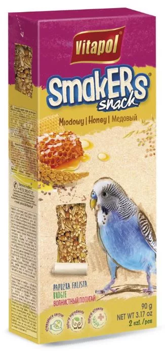 A megfelelő keménység biztosítja, hogy a Vitapol Smakers a tápértékeken túlmenően a rágcsálók és nyulak metszőfogainak rendszeres kopásával is gondoskodjon. Smakers, akiknek összetétele tápláló mézzel dúsult. A pollen az íz és tápérték mellett a gyógyító és erősítő immunitási tulajdonságokkal is rendelkezik. Sikeresen beadható egészséges és beteg vagy gyengült papagájok számára is.