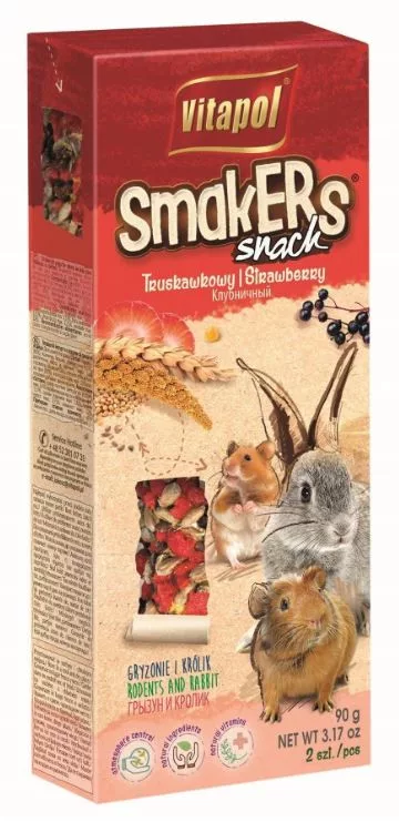 A megfelelő keménység biztosítja, hogy a Vitapol Smakers a tápértékeken túlmenően a rágcsálók és nyulak metszőfogainak rendszeres kopásával is gondoskodjon. A rágcsálók sokféle és kiegészítik a rágcsálók és nyulak étrendjét.